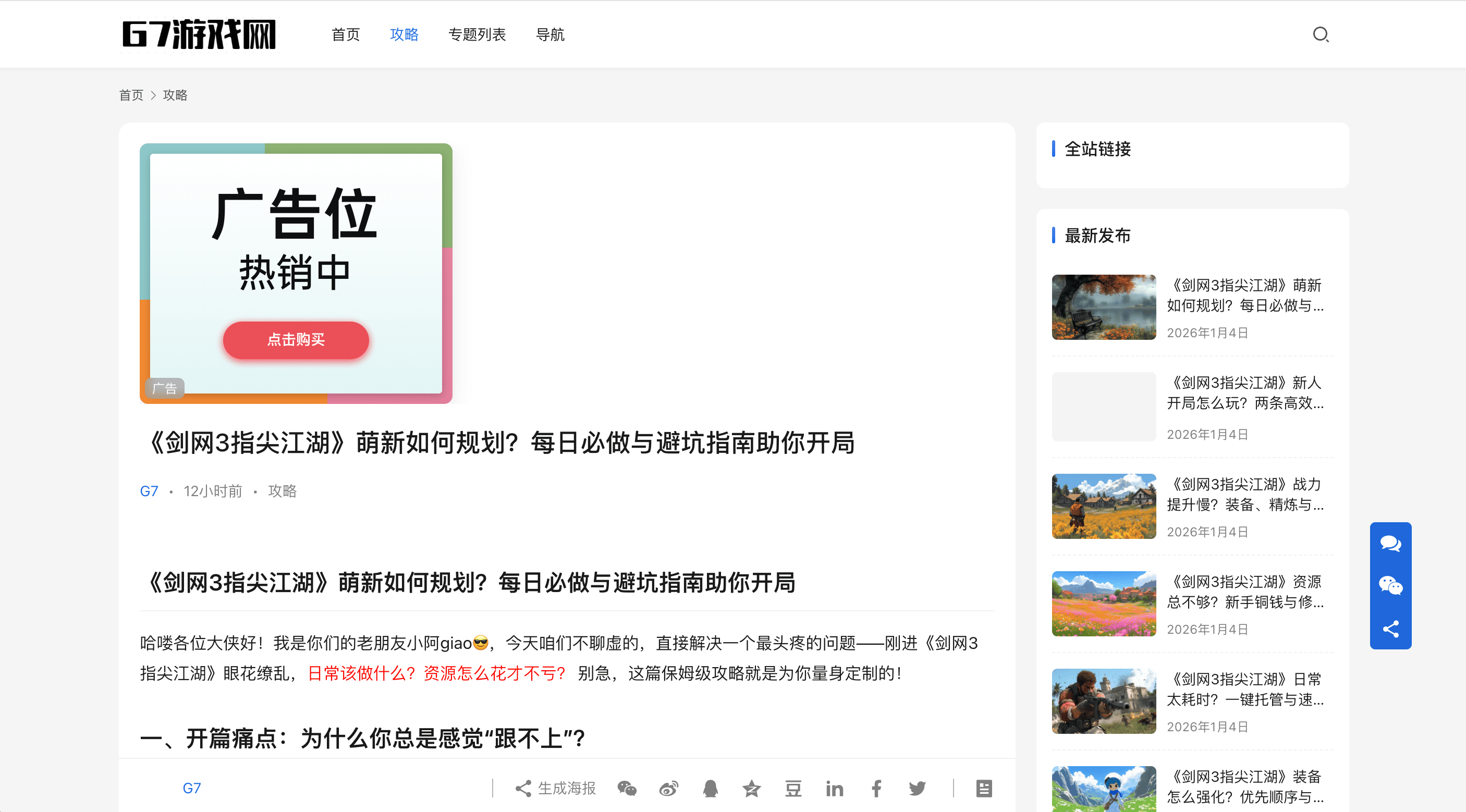 G7 游戏网提供最新的游戏攻略大全,王者级游戏攻略,如果您也有独特的游戏技巧,敬请分享!