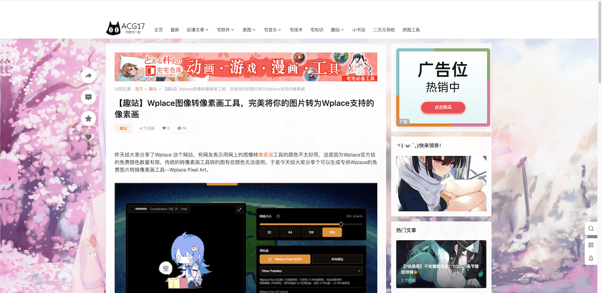 ACG17 是一个宅向 ACG 动漫资源信息分享站点,专注分享 ACG 趣闻资讯和高清动漫游戏音乐资源,在这里你能找到很多欢乐。旗下公众号“ACG17宅一起”目前 25w+ 粉丝,还有 ACG 导航站和许多在线实用工具站供您使用。